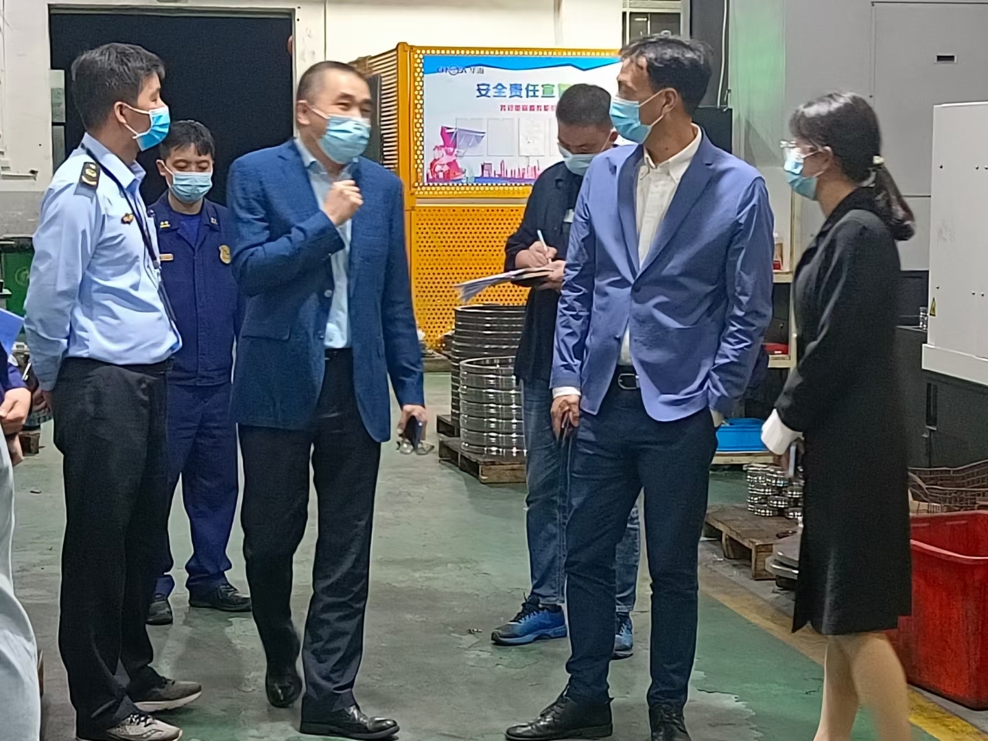 10月12日晚上,溫州市灣新區領導前來我公司進行指導生產工作。